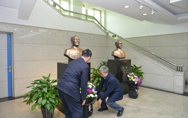 左良所长、孙晓峰副所长共同为李薰先生、葛庭燧先生、师昌绪先生、郭可信先生塑像敬献了花篮,青年职工和研究生向塑像敬献了菊花,大家向塑像鞠躬,表达了对金属所前辈们的崇高敬意和深切怀念。