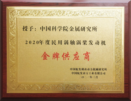 3月29日,在湖南株洲召开的民用涡轴涡桨及辅助动力项目年度工作会上,金属所被中国航发湖南动力机械研究所和中国航发南方工业有限公司授予2020年度民用涡轴涡桨发动机金牌供应商。
