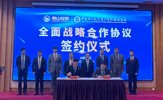 4月2日,中国科学院大连化学物理研究所与南山控股有限公司(以下简称“南山控股”)战略合作协议签约仪式在烟台举行。南山控股董事长宋作文、副董事长宋英豪、执行董事程仁策、总经理罗强及南山控股下属企业相关人员,龙口市市委常委、组织部部长孙永刚,大连化物所所长刘中民、副所长蔡睿、科研及职能部门相关人员参加了签约仪式。南山控股研究院党委书记潘峰和蔡睿代表双方签订战略合作协议。