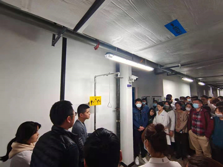 综合管理处段仰磊通过现场演示,向大家讲解了冲淋洗眼器的使用步骤和注意事项。同时,结合日常检查中发现的情况,再次强调了实验个人防护的重要性,特别是护目镜的佩戴和实验人员鞋子的选择。