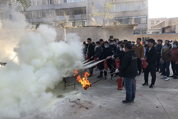 演练开始前,后勤与基建处消防安全主管崔越进行了动员和专题培训,为大家讲解了常用灭火器类型以及灭火器材的使用方法、适用范围及注意事项,并与演习人员积极互动。随后安保办张达主任向演习人员强调了提高消防安全意识的重要性,从实际出发根据亲身救火经历提醒大家重视消防安全工作。消防演练中,工作人员点起演习篝火,演练人员分组紧张有秩序地开展灭火练习,活动进行了近1个小时。本次灭火演习通过将理论认识和实际操作相结合,使职工和学生掌握了灭火器的使用方法以及火灾扑救的注意事项,提高了火灾预防意识和应急自救能力,达到了较好的演练效果。