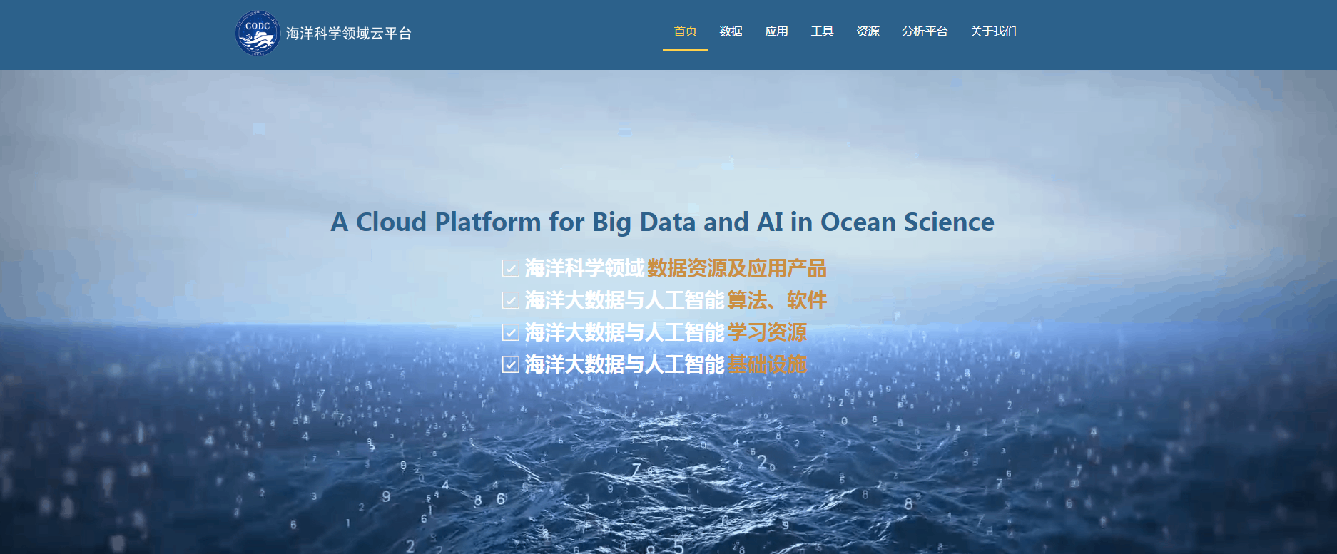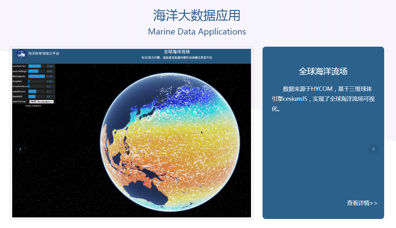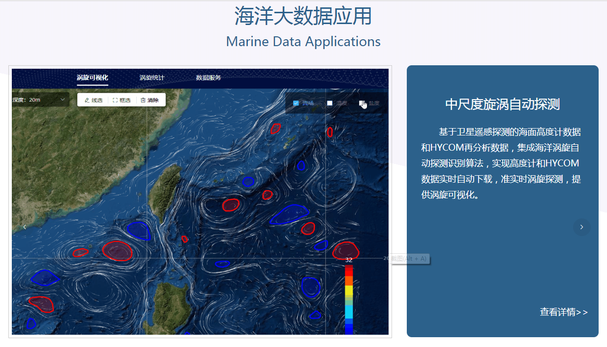 目前,已上线船基调查数据集353套、定点观测数据集59套、卫星遥感数据6套及再分析数据产品、国际共享数据集10余套。此外,集成海洋与大气科学数据软件工具500余套,自主开发了多项海洋大数据与人工智能应用产品等。