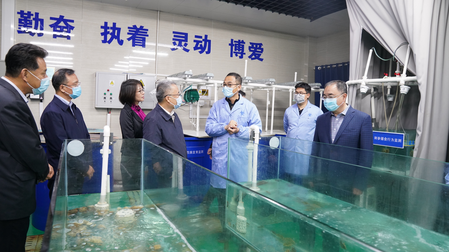 在中科院海洋牧场工程实验室,科研人员详细汇报了海洋所在海洋牧场理论创新、生境修复、资源养护、安全保障、融合发展、新品种培育与示范推广等方面取得的系列成果,介绍了循环水养殖系统相关情况。