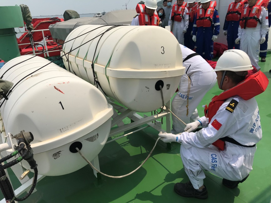 5月21日上午,中国科学院烟台海岸带研究所综合办公室组织部分专职、兼职安全员观摩“创新一”号科考船安全演习。研究所纪委书记王晓斌到场并讲话。他说,安全是做好一切工作的基础,科考船上的安全管理有其特殊性,船上安全演练是常态化的工作,综合办公室组织安全员来船上观摩安全演练,也是一次发现问题隐患、相互学习的机会。