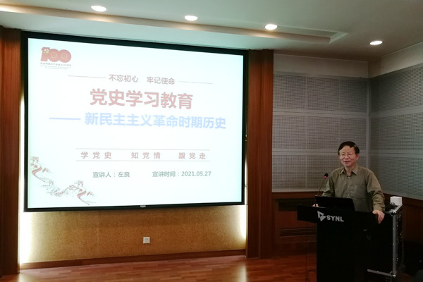 会上,左良所长首先作了题为《党史学习教育第一阶段:新民主主义革命时期》的主题交流报告,详细介绍了“五四运动”和马克思主义在中国的传播、中国共产党的成立、第一次国共合作和大革命高潮的兴起、以武装斗争反抗国民党的反动统治、红军长征和全面抗战、夺取新民主主义革命胜利等各个时期的重要历史事件和宝贵精神。左良同志指出,学习党史,就是要用党的伟大成就激励人、用党的优良传统教育人、用党的成功经验启迪人、用党的历史教训警示人,通过学习党史,认清历史方位,汲取前行的智慧与力量,要注重将党史学习同研究所实际结合起来,从成功中汲取经验、从失败中总结教训。左良同志强调,面向新时代、新征程,要明确发展目标、找准发展路径,作为“国家队”“国家人”,要肩扛“国家责”,心系“国家事”。