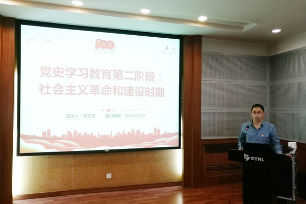 党委委员郑玉贵同志作了题为《党史学习教育第二阶段:社会主义革命和建设时期》的主题交流报告,全面回顾了新中国成立、抗美援朝和民主革命、社会主义制度的建立、社会主义建设的探索和曲折发展等时期的历史,并详细解读了抗美援朝精神、塞罕坝精神、“两弹一星”精神、铁人精神、焦裕禄精神、雷锋精神等。郑玉贵同志还结合金属所的发展历史,介绍了金属所在服务钢铁冶金工业恢复与发展、“两弹一星”等方面做出的突出贡献。