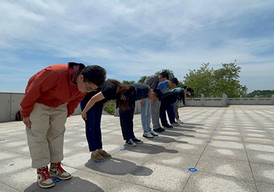 一寸山河一寸血,一抨热土一抨魂。在抗美援朝纪念馆内,栩栩如生的复原场景和丰富的档案馆藏,真实而又生动地重现了那场艰苦卓绝的战争历史。团员青年认真聆听讲解员的详细讲解,回顾抗美援朝战争历史背景、战役过程,追忆杨根思、黄继光、邱少云、毛岸英等一个个革命英烈,铭记保家卫国的感人战斗故事,观摩纪念馆中珍贵的历史图片与文物?!俺运煌蚓恕?,大家深切地感受到我们如今的红色江山来之不易,须牢记红色政权是从哪里来的,须缅怀革命先烈,传承革命英雄的爱国主义精神。参观纪念馆后,熊川男带领团委委员与团青年在抗美援朝纪念碑前向抗美援朝英雄鞠躬致敬。