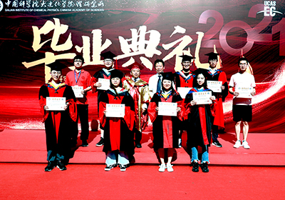 所学位评定委员会副主任周永贵研究员宣读了大连化物所2021年研究生学位授予及拟授予名单。大连化物所8名学位评定委员会委员为参加典礼的毕业研究生代表颁发了毕业证书并扶正流苏。