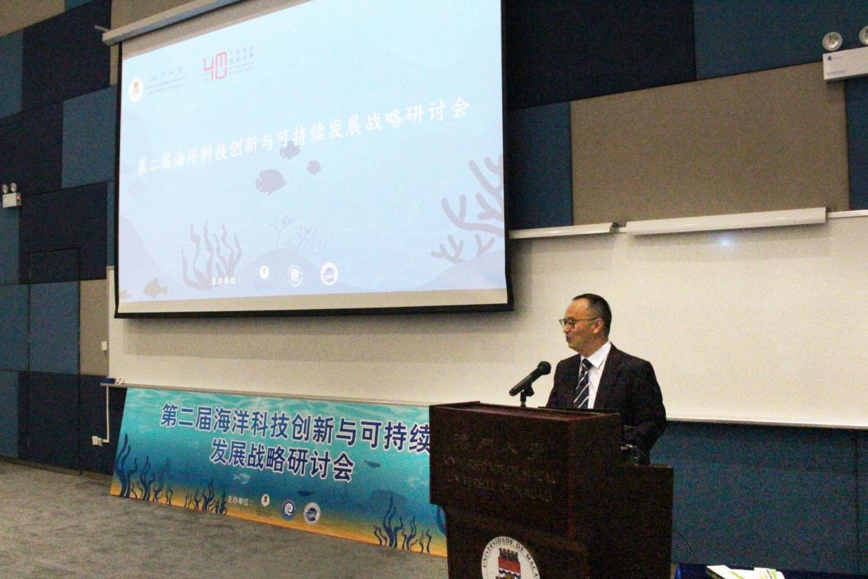 澳门大学校长宋永华在致辞中指出,澳门特别行政区作为粤港澳大湾区的四个核心城市之一,在海洋领域将“坚持海陆统筹、科学开发、加强粤港澳合作,拓展蓝色经济空间、共同建设现代化海洋产业基地”,是澳门责无旁贷的责任。他表示此次研讨会将有效构建海洋科技创新可持续发展战略领域良好的交流平台,进一步推动两地的合作。
