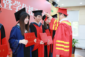 在欢快的乐曲声中,毕业生导师亲自为学生颁发了毕业证书,吕雪峰为毕业生一一拨穗扶正流苏,授予学位。