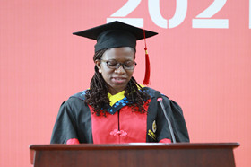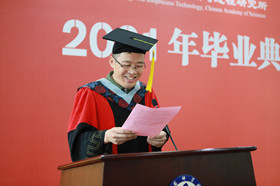 我所导师代表李福利研究员与同学们一起回顾了祖国从苦难到强大的曲折历程,结合当前科技竞争趋势,勉励大家发扬新时代科学家精神,科技报国。毕业生代表赵志明、毕业留学生代表Jessica Juweriah Ibrahim回顾了求学路上的点点滴滴,深情表达了对研究所、导师辛勤培养和关心爱护的感激之情以及对未来的美好期许。