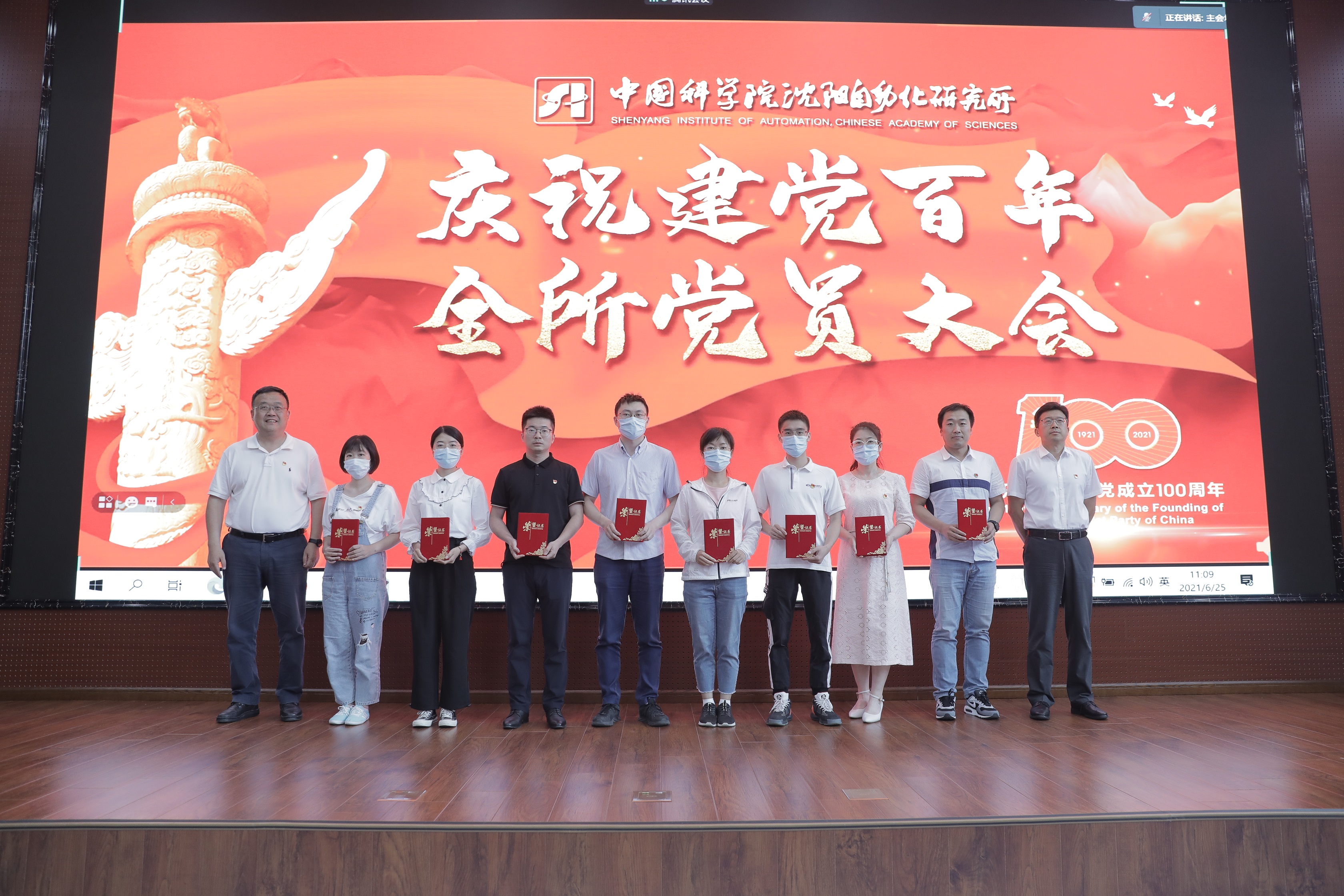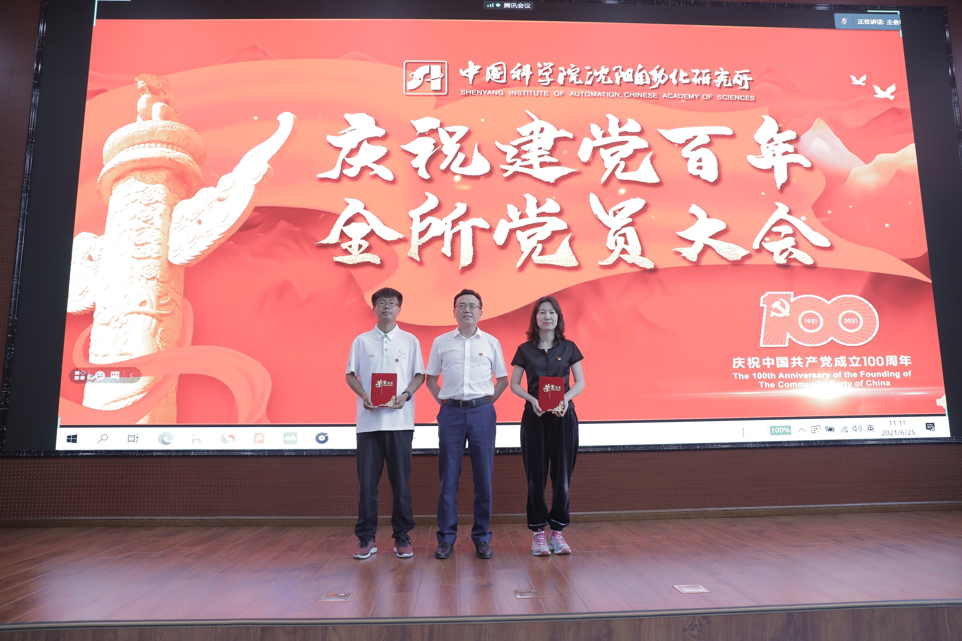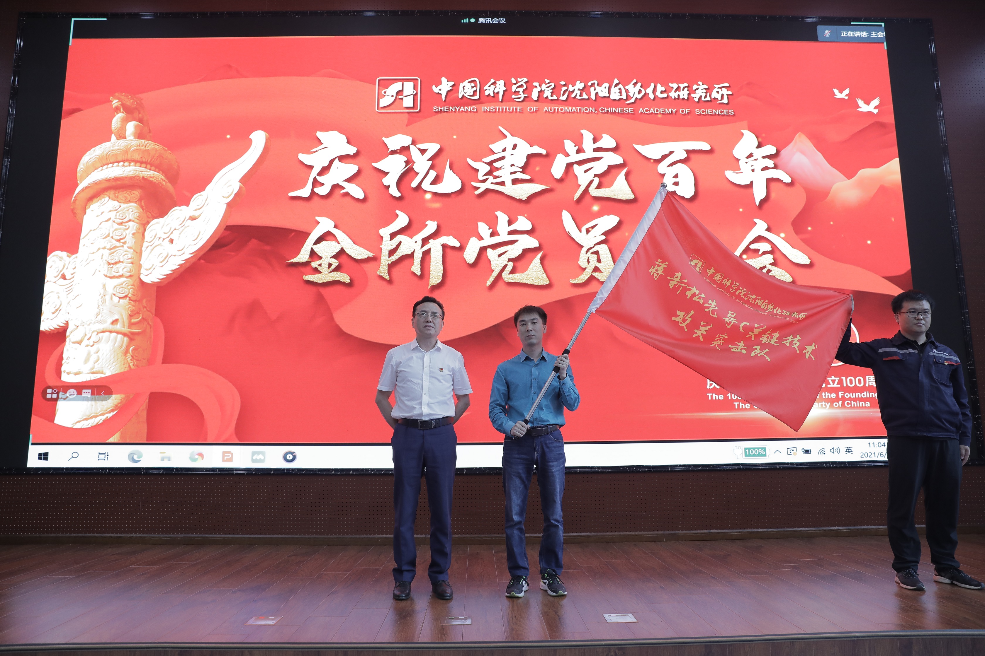 6月25日,中国科学院沈阳自动化研究所隆重举行庆祝建党百年全所党员大会。所党委委员、所领导班子成员及党员代表近500人在主会场及3个视频分会场参加了大会。 会议邀请了辽宁省委党校副教授位涛作党史学习教育专题报告,对“蒋新松先导C关键技术攻关突击队”进行了冠名授旗,为党史知识竞赛获奖集体颁奖,对沈阳自动化所“矢志卓越 智造强国”线上党员学习教育基地进行了现场展示。会议由党办主任周船主持。
