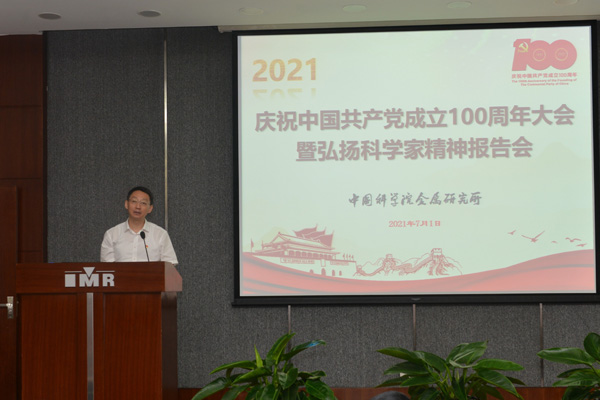 7月1日上午8时,所党委在文化路园区学术报告厅隆重举行庆祝中国共产党成立100周年大会暨弘扬科学家精神报告会。在所党政班子成员、党总支和党支部委员、职工党员等共计300余人参加会议?;嵋橛傻澄榧?、副所长徐岩同志主持。