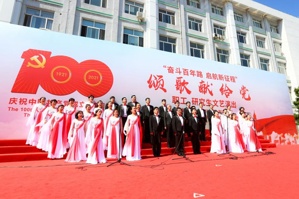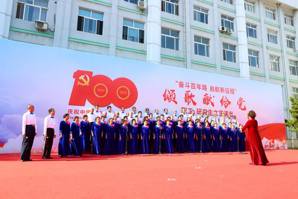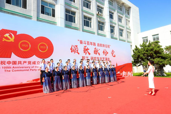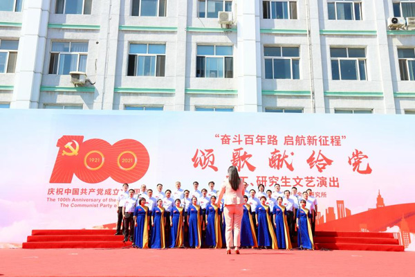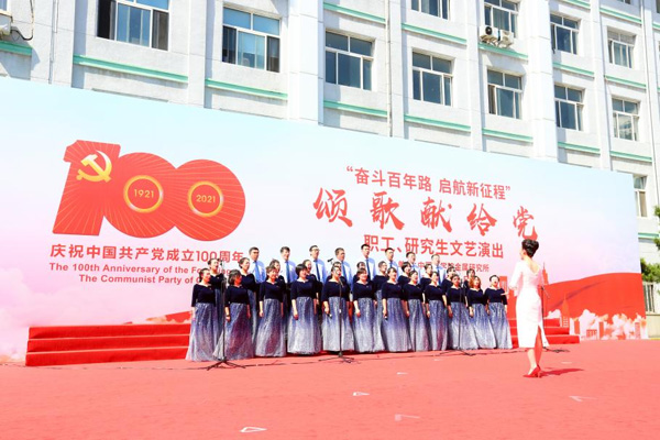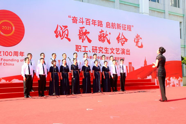 整场演出振奋人心、催人奋进。在各分工会、党支部的精心策划和组织下,历时近3个月,呈现了一台高质量的文艺演出,充分表达了广大职工和研究生永远跟党走、昂首阔步迈向全面建设社会主义现代化国家新征程的豪情壮志,充分展现了大家团结奋进、锐意进取的精神风貌,也将“七一”当天庆祝建党百年活动推向了最高潮。
