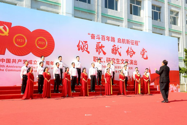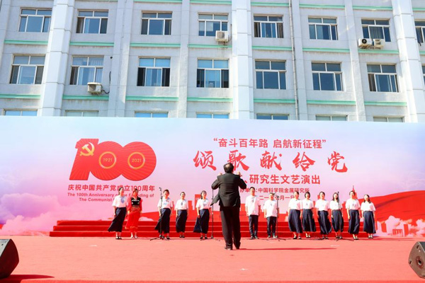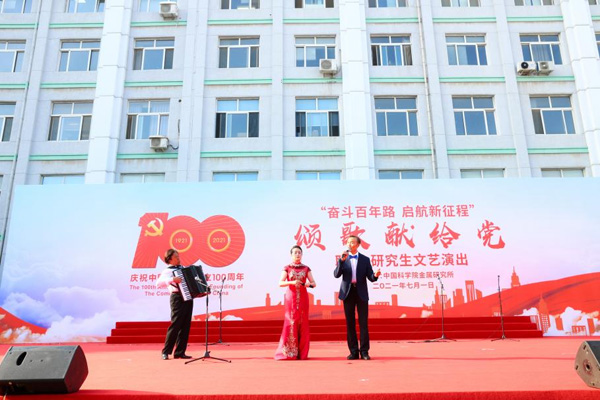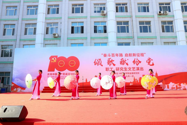 7月1日下午,金属所庆祝中国共产党成立100周年职工、研究生“颂歌献给党”文艺汇演在葛庭燧楼前广场隆重举行。在所党政班子成员、李依依院士,以及广大职工、研究生现场观看了文艺演出,共同庆祝中国共产党百年华诞。