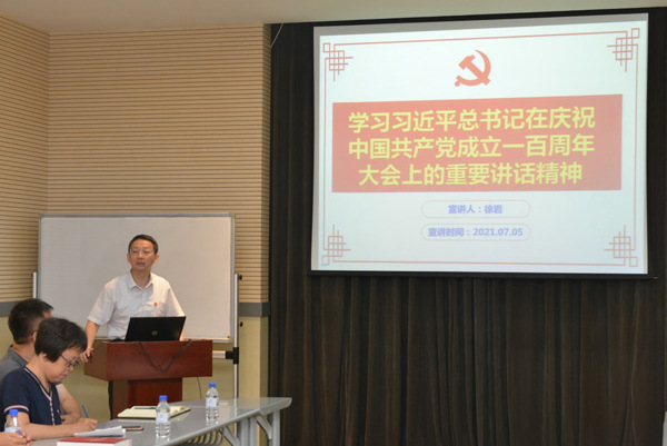 7月5日上午,所党委理论学习中心组召开扩大会议,组织专题学习贯彻习近平总书记在庆祝中国共产党成立100周年大会上的重要讲话精神,在所党政班子成员、纪委委员、职能部门负责人、在职职工党总支和党支部书记参加了会议,党委书记、副所长徐岩主持学习活动。