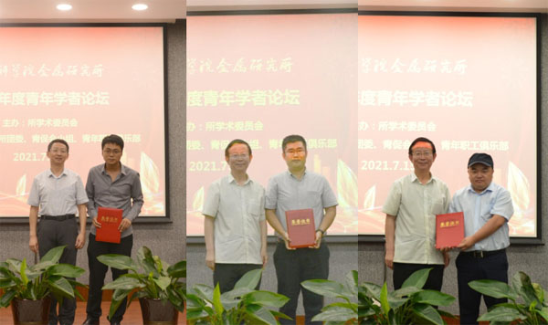 经评委现场打分,本次论坛共评选产生一等奖2名(获奖人:王政彬、杨勇强),二等奖4名(获奖人:刘洋、高明浩、昝宇宁、王斌),三等奖6名(获奖人:姚婷婷、马会、徐伟、张瑞、王旻、罗颐秀),其余报告人获得纪念奖。同时,论坛通过职工和研究生扫码投票的方式推选出昝宇宁博士为本次论坛的“最佳人气奖”报告人。左良所长和徐岩书记分别为一、二、三等奖获奖者和“最佳人气奖”报告人进行了现场颁奖。