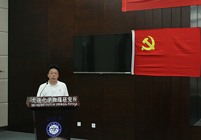 盛夏的长兴岛园区草木葱茏、碧海流云。8月6日上午,中国科学院大连化学物理研究所党委在长兴岛园区举办“张存浩突击队”命名授旗宣誓仪式。党委书记金玉奇向“张存浩突击队”授旗并讲话?!罢糯婧仆换鞫印倍釉?、化学激光研究室在长兴岛的全体人员在鲜红的党旗、队旗下齐聚一堂,共同见证了简短而庄重的仪式过程。仪式由党委办公室主任王书诏主持。
