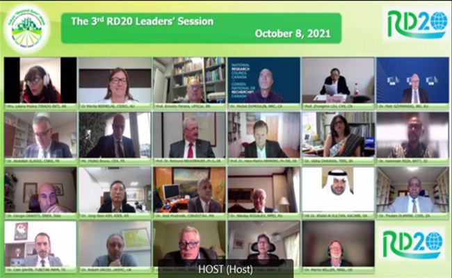 10月8日,第三届二十国集团洁净能源技术研讨峰会(The 3rd Research and Development 20 for Clean Energy Technologies (RD20))领导人会议(Leaders' Session)以视频会议形式召开,中国科学院大连化学物理研究所所长、院士刘中民受邀代表中国科学院出席会议并发言。阿根廷国家工业技术研究所、加拿大国家研究委员会、欧盟联合研究中心、法国国家科学研究中心、英国能源研究中心、美国可再生能源实验室、日本国家材料科学研究所等24个研究机构的代表出席会议。