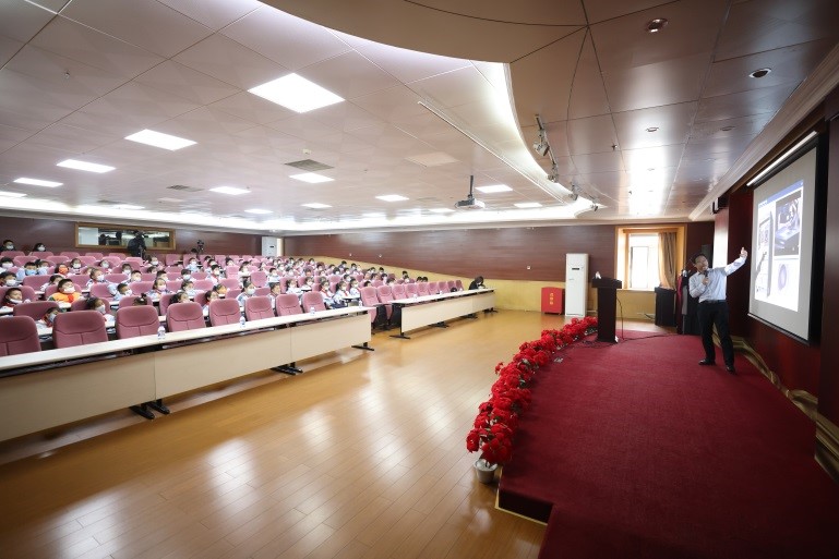 空间自动化技术研究室副主任张伟研究员作了题为《逐梦九天 拥抱星辰大?!返目破毡ǜ?。他首先向孩子们提出了问题,就是人类为什么要探索宇宙。随后,他通过短片和丰富的图片,讲解了目前人类探索未知宇宙所采用的几种技术手段,包括载人空间站等,以及在太空中使用的机器人与自动化技术需要克服的主要技术难题。他还以与地球之间距离为线索,为孩子们讲解了目前我国及世界上主要发达国家在月球、火星和小行星探测等方面所使用的科学探索技术。