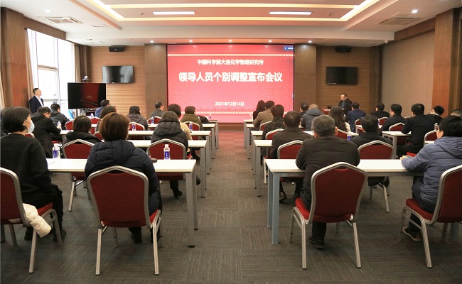 12月14日下午,中国科学院大连化学物理研究所在能源基础楼一楼会议室召开研究所领导人员个别调整宣布会议。所领导、党委委员、纪委委员、研究室(部)主任(部长)、职能部门负责人及副处长等参加会议,沈阳分院分党组成员、副院长马越红出席会议?;嵋橛缮蜓舴衷鹤橹耸麓ΥΤで纳鞒?。