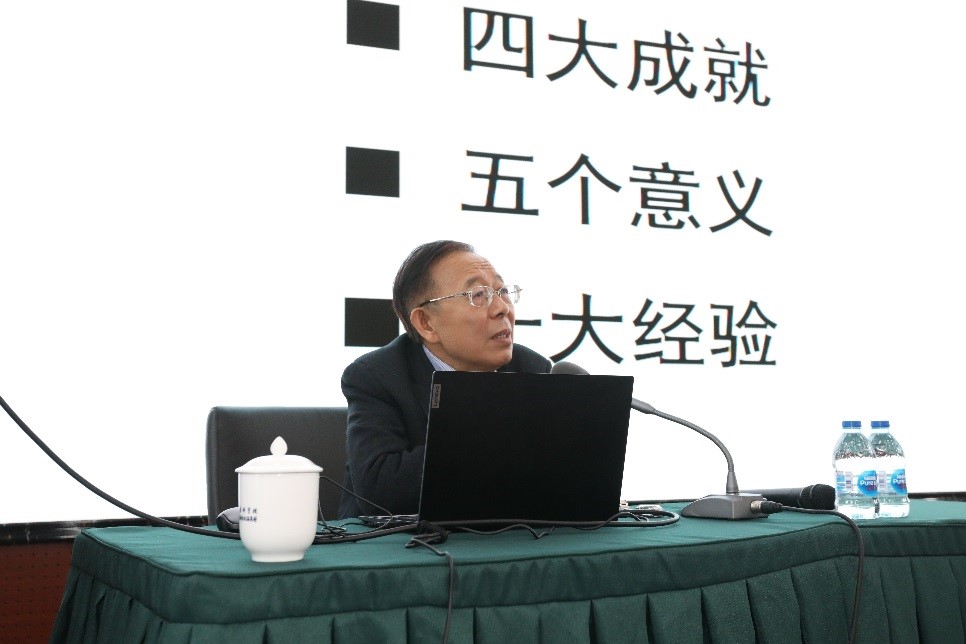 报告会上,孙学敏以《党的百年奋斗重大成就和历史经验——学习党的十九届六中全会精神》为题作了专题报告,他通过介绍《中共中央关于党的百年奋斗重大成就和历史经验的决议》的时代背景和意义,紧紧围绕实现中华民族伟大复兴这一主题,详述建党以来的三次飞跃和历史成就,以及十个坚持的历史经验。报告内容详实、理论与史料结合,为与会人员深入学习理解把握十九届六中全会精神提供了指导。