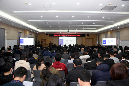 1月10日,青岛能源所2022年工作会议暨三届四次职工代表大会隆重开幕,两所所领导、党委委员、纪委委员、研究组副高及以上人员及党支部书记、职代会代表、职能部门全体人员、项目聘用代表、研究生代表等290余人参加了会议?;嵋橛筛彼げ填V鞒?。会议在行政楼201设视频分会场,同时采取科技云会议方式向全所职工、学生直播。