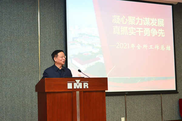 左良所长进行了2021年全所工作总结并汇报了2022年工作设想。他指出,2021年金属所以习近平新时代中国特色社会主义思想为指引,对标“四个率先”和“两加快一努力”要求,坚持和加强党对科技工作的全面领导,坚决贯彻落实中科院党组各项决策部署,践行“国家队”“国家人”必须心系“国家事”、肩扛“国家责”的使命担当,研究所发展再谱新篇,“十四五”取得良好开局。左良所长从落实院党组决策部署、成果产出及荣誉奖励、经费收支与支撑保障、存在问题等方面对2021年工作进行了总结,并对2022年工作提出九方面设想。他表示,2022年,金属所将深入学习贯彻习近平总书记系列重要讲话和党的十九届历次全会精神,坚决贯彻落实院党组冬季扩大会议和院工作会议精神,强基础、抓攻关、聚人才、促改革,以更加坚定的信心、更加昂扬的斗志、更加务实的作风,凝神聚力、埋头苦干、勇毅前行,推进使命驱动的建制化基础研究和关键核心技术攻关,为国家实现高水平科技自立自强做出新的更大的贡献,以优异成绩迎接党的二十大胜利召开。