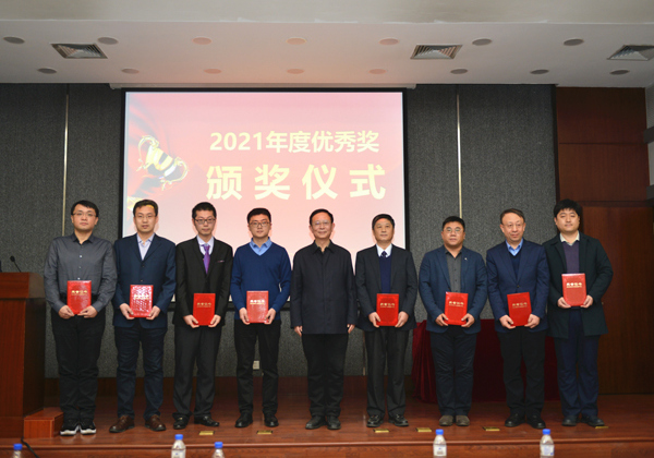 徐岩书记主持了2021年度金属所优秀奖颁奖仪式,宣读了年度优秀奖表彰决定,左良所长为科技创新奖获得者孙东明、王全兆,优秀青年学者奖获得者潘庆松、赵子博,优秀支撑奖获得者段启强、线全刚,优秀管理奖获得者周砚磊,优秀教学奖获得者张士宏颁发证书。会上还以短视频方式展示了金属所2021年度员工考核获得优秀的人员情况。