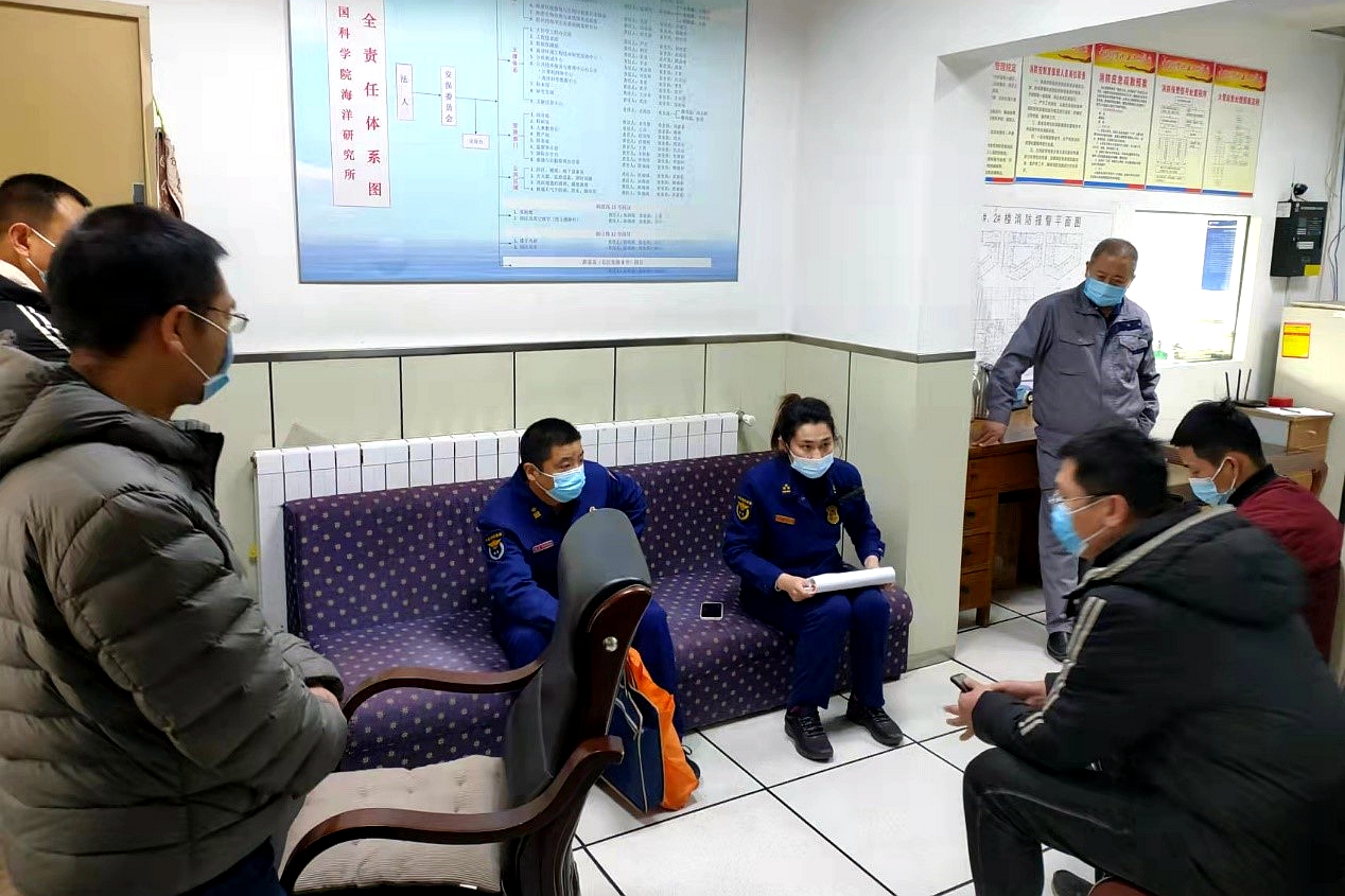 3月1日,青岛市消防支队市南大队工作人员对海洋所南海路园区进行消防安全抽查。