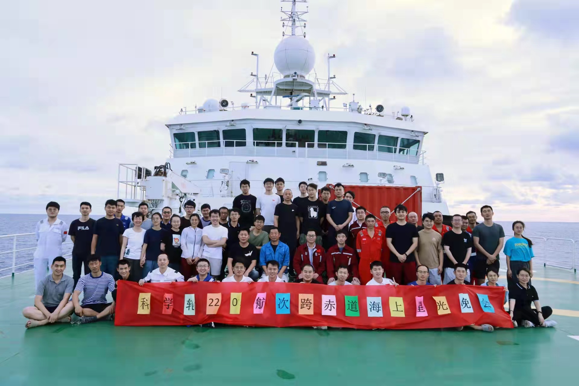 “科学”号第十次穿越赤道合影留念