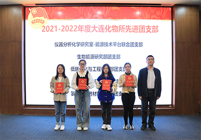 本次会议的主题是“喜迎二十大,永远跟党走,奋进新征程”。奏唱国歌后,团委书记熊川男宣读 “中科院五四青年奖章”“中科院五四红旗团委”“大连化物所先进团支部”“大连化物所优秀团干部”“大连化物所优秀团员”的表彰名单。金玉奇、梁波、办公室主任李振涛、党委办公室王书诏和熊川男分别为获奖集体与个人颁发荣誉证书。