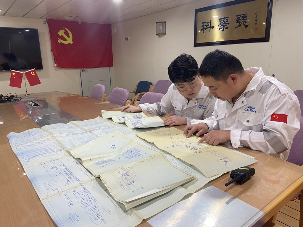 审核“科学”号坞修工程图纸