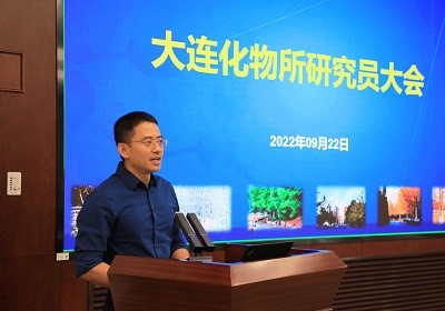 9月22日上午,中国科学院大连化学物理研究所组织召开研究员大会,选举第十届学术委员会委员、学位评定委员会委员。本次会议以线上线下相结合的形式召开,在能源学院园区和星海园区设置两个线下会场,所领导、第九届学术委员会和学位评定委员会部分委员、职能部门部分人员线下参加;其余在职研究员或相当专业技术职称人员通过大连化物所专属App观看会议直播?;嵋橛筛彼げ填V鞒?。