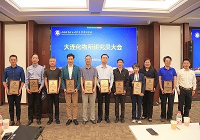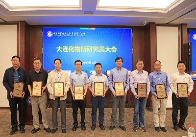 会上,为感谢第九届学术委员会和学位评定委员会各位委员在过去五年中,对大连化物所学科规划、人才引进聘任、项目评选、研究生学位评审、学科建设、导师队伍建设等方面发挥的重要作用,所长刘中民和党委书记金玉奇分别为两个线下会场的委员颁发荣誉证书??萍即ΥΤばび詈脱芯可恐魅涡懿╆头直鹱髁说诰沤煅跷被峁ぷ鞅ǜ婧脱黄蓝ㄎ被峁ぷ鞅ǜ?。