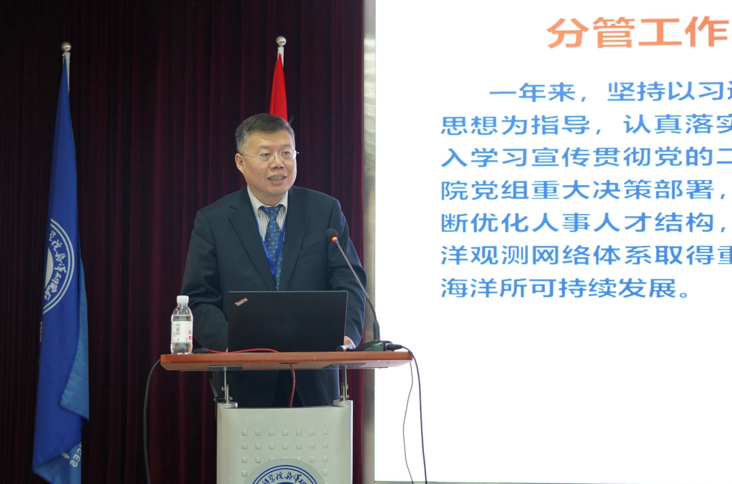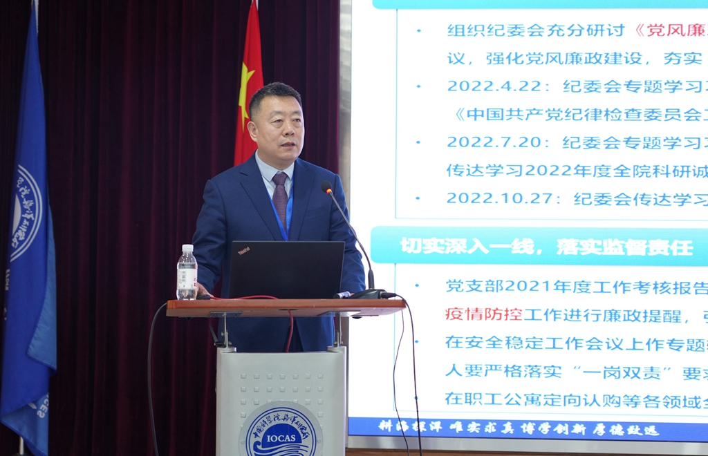会上,海洋所党委书记、副所长王辉,党委副书记、纪委书记毕伟,副所长沙忠利,分别就个人分管工作做专题工作报告和个人述职述廉。7个研究单元负责人分别汇报了实验室2022年重点工作完成情况及2023年工作思路。