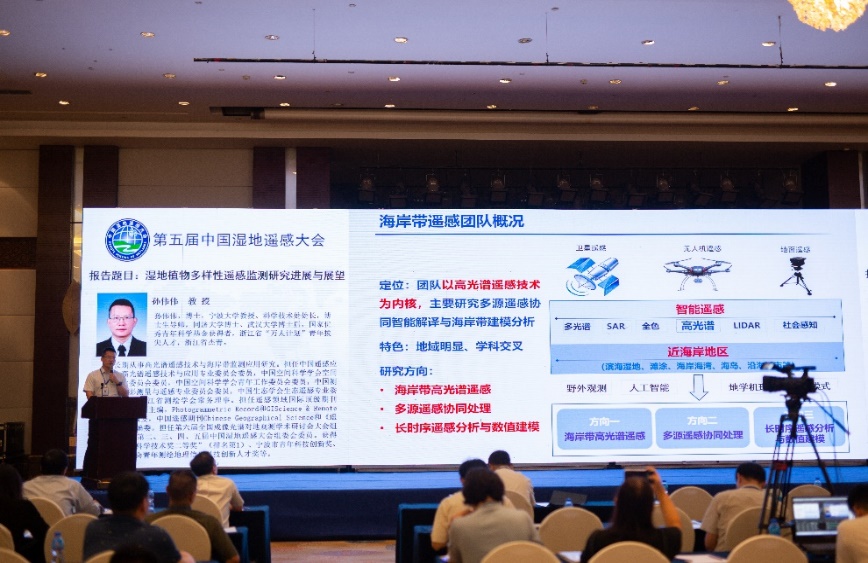大会特邀报告环节中国科学院成都生物研究所副所长陈槐研究员、中国科学院烟台海岸带研究所副所长韩广轩研究员、中国科学院东北地理与农业生态研究所副所长王宗明研究员、中国科学院烟台海岸带研究所邢前国研究员、自然资源部第二海洋研究所张华国研究员、宁波大学孙伟伟教授以及中国科学院烟台海岸带研究所侯西勇研究员分别作了题为“泥炭地碳动态与全球变化”“典型河口湿地演变机制与生态修复”“中国湿地土壤有机碳储量时空特征”“我国近海大型海藻遥感及其蓝碳贡献评估”“太平洋岛屿国家海岸带与海岛生态环境遥感应用”“湿地植物多样性遥感监测研究进展与展望”以及“黄河三角洲鸟类多样性及其生境质量遥感监测与评估”的主旨报告。大会特邀报告环节由烟台海岸带所侯西勇研究员和鲁东大学资源与环境工程学院吴孟泉教授共同主持。