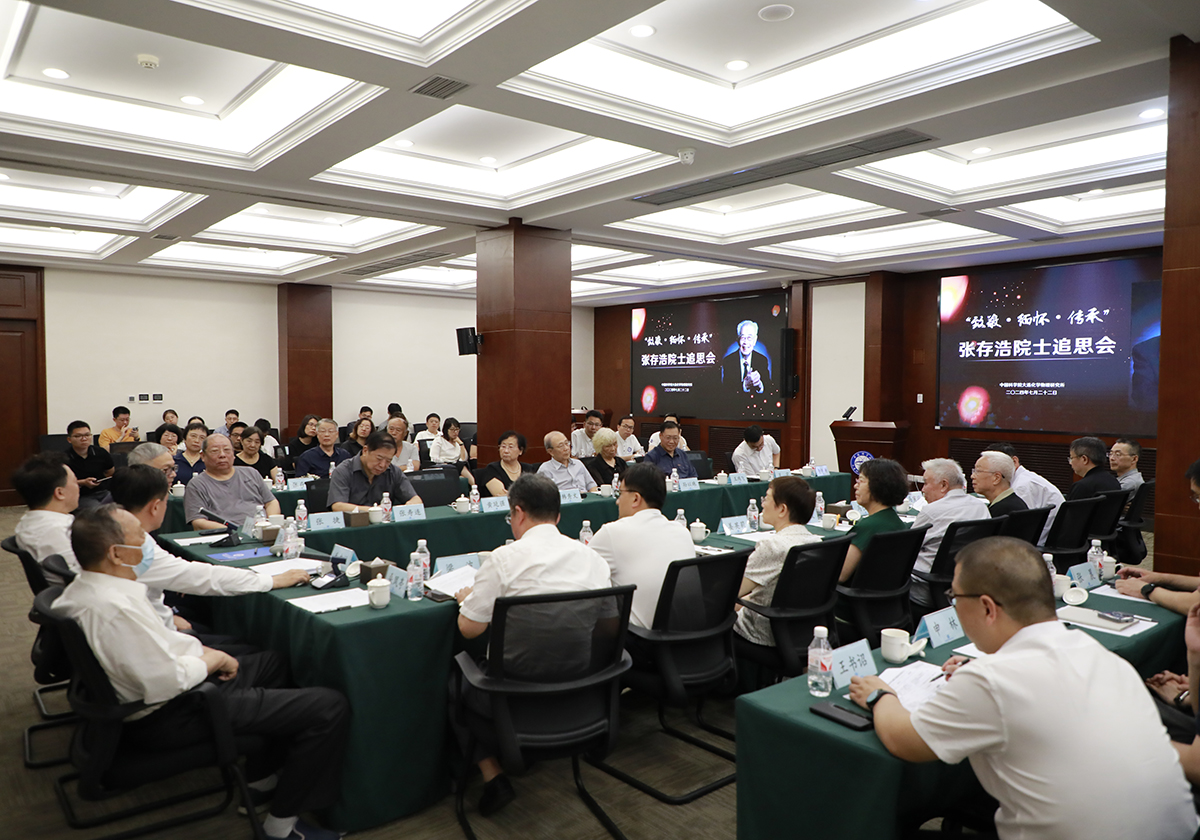 为追忆缅怀张存浩先生的报国情怀、科学态度和崇高风范,传承弘扬张存浩先生志存高远、爱国奉献、矢志创新的宝贵精神,7月22日上午,大连化物所在交流中心召开“致敬·缅怀·传承”张存浩院士追思会。沈阳分院分党组书记毛志远,张存浩先生之子张捷,张大煜先生之子张寿连,中国工程物理研究院、中国科学院成都光电所、西湖大学等合作单位领导出席会议。在连所领导班子成员,院士代表,所务委员,党委委员,纪委委员,离退休代表,职能部门负责人,化学激光研究室、化学动力学重点实验室及研究组负责人、党组织书记和委员,“张存浩化学激光突击队”、“大连光源突击队”代表等六百余人在线上线下共同追思缅怀。会议由党委副书记、纪委书记梁波主持。