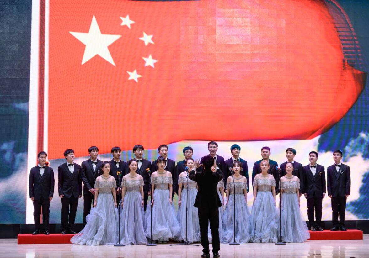 第三篇章将音乐会逐步推向高潮,表演者用铿锵有力的节目彰显家国情怀。歌曲《追寻》和《灯火里的中国》回顾了革命前辈对理想与信念的坚守,合唱《强国一代有我在》《我的中国心》《不忘初心》和《保卫黄河》激昂高亢,振奋人心。最后,音乐会在全体合唱《我爱你中国》的深情旋律中圆满落幕,观众在《难忘今宵》的温馨歌声中有序离场。