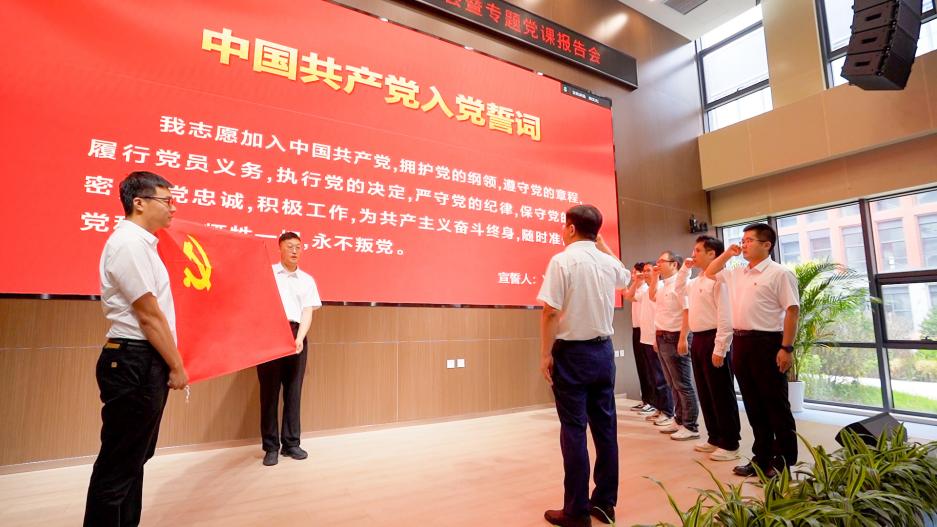 大会在庄严的国歌声中拉开帷幕。在所长、党委书记吕雪峰的领誓下,5名预备党员面向鲜红党旗庄严宣誓,全体与会党员重温入党誓词。铿锵有力的誓言响彻会场,鼓舞大家时刻牢记共产党员的第一身份,在科研创新中发挥先锋模范作用。